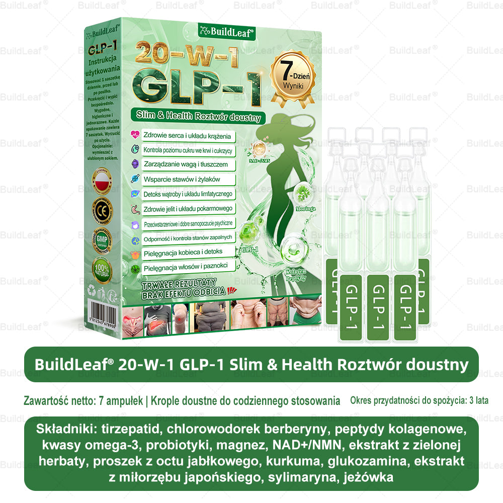 BuildLeaf® GLP-1 20 w 1 Slim & Health Oral Solution , zawierający 100 miliardów CFU aktywnych probiotyków ✅ Wspomaga kontrolę wagi, zdrowie serca, cukrzycę, a jednocześnie ujędrnia skórę i dodaje energii.